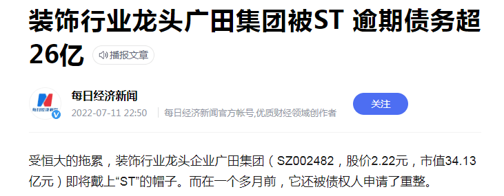 2022年5月30日,曾经的建筑装饰一线企业,深圳广田股份收到了《重整及预重整申请通知书》。