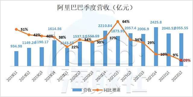 北京时间8月4日晚间,阿里巴巴于美股盘前、港股收盘后发布了2023财年Q1(日历年2022Q2)的业绩公告。财报显示,阿里实现营收2055.6亿元,去年同期收入为2057.4亿元。阿里巴巴营收首次出现了季度同比负增长,负增长0.09%。曾经打着手电筒也找不到对手的阿里,业绩尽显颓势,阿里开始走向下坡路。