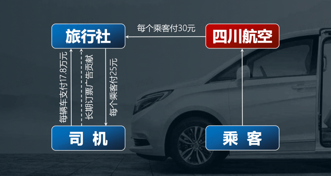 但是,四川航空也不会干接送机这件事啊,于是把多出来的100块,分了30块给旅行社说,旅行社你能不能来帮我干这事。