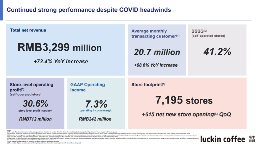 在收入端,瑞幸2022年第二季度总净营收为32.987亿元,较上年同期的19.137亿元增长了72.4%。