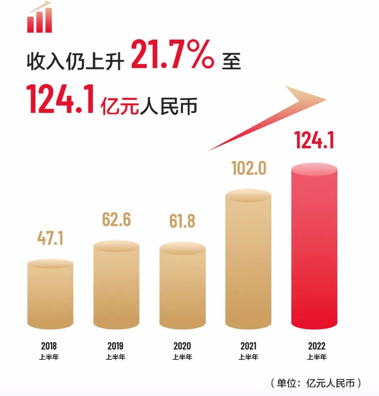 8月12日早间,李宁公司披露了截至2022年6月30日止6个月的中期业绩。期内,李宁公司收入达124.09亿元,较2021年同期上升21.7%。毛利则较2021年同期的56.99亿元上升8.8%至约62.01亿元,集团整体毛利率为50.0%,较去年同期下降5.9个百分点。
