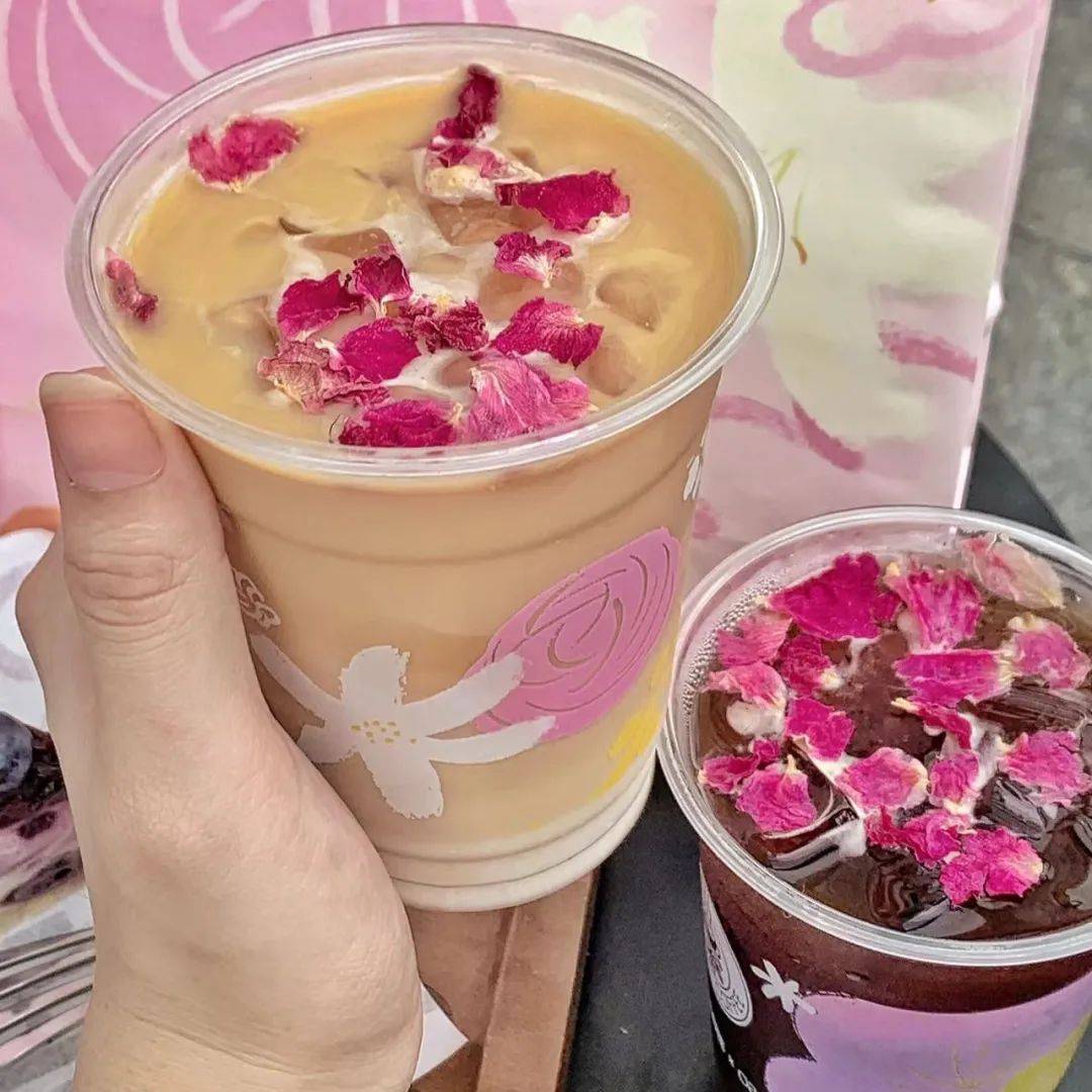 同时,太平洋咖啡在产品上也发生了一次大升级,多个新鲜爆款都和“花”有关。比如,以“花+果”为主角的玫瑰荔枝系列:玫瑰荔枝美式、玫瑰荔枝拿铁。