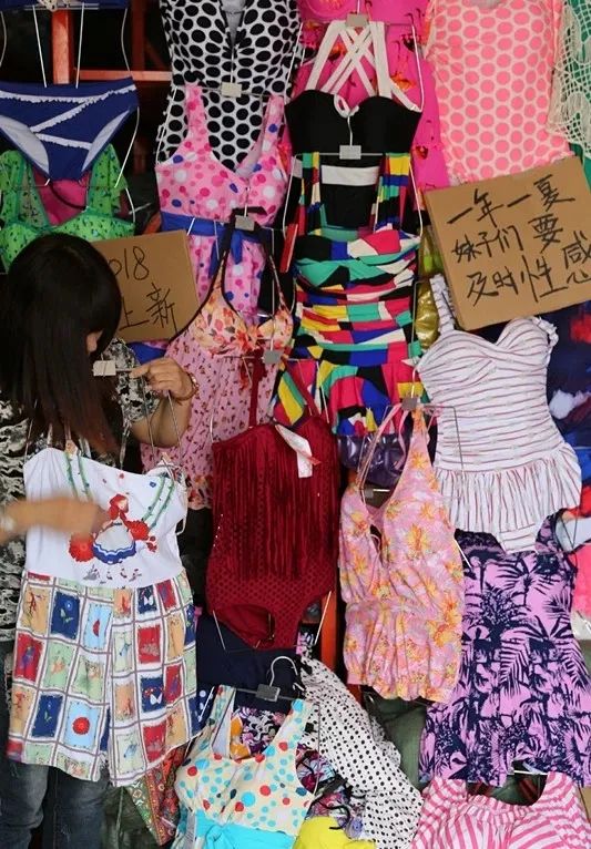 虽然近些年国内女生逐渐大胆,但兴城的泳装从业者表示,还是需要在比基尼外套个小裙子,加个薄披肩,把该遮的遮住又不影响样式,这样的泳衣才好卖。