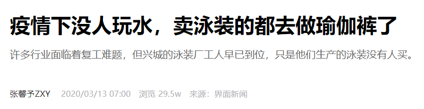 一方面,他们扩充产品线,转型做起了口罩、防护服和护目镜,还有瑜伽服健身服。