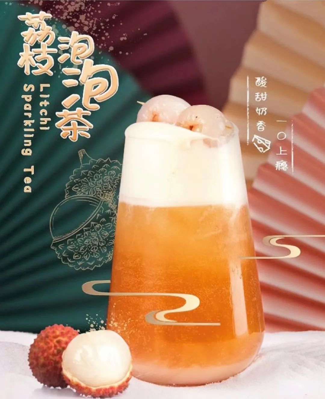 安佳专业乳品研发过一款“荔枝气泡茶”的产品,用荔枝果汁融合乌龙茶汤,再充入二氧化碳做成气泡茶,搭配芝士奶盖后,微酸气泡和奶油风味达到一个平衡,十分适合夏天。