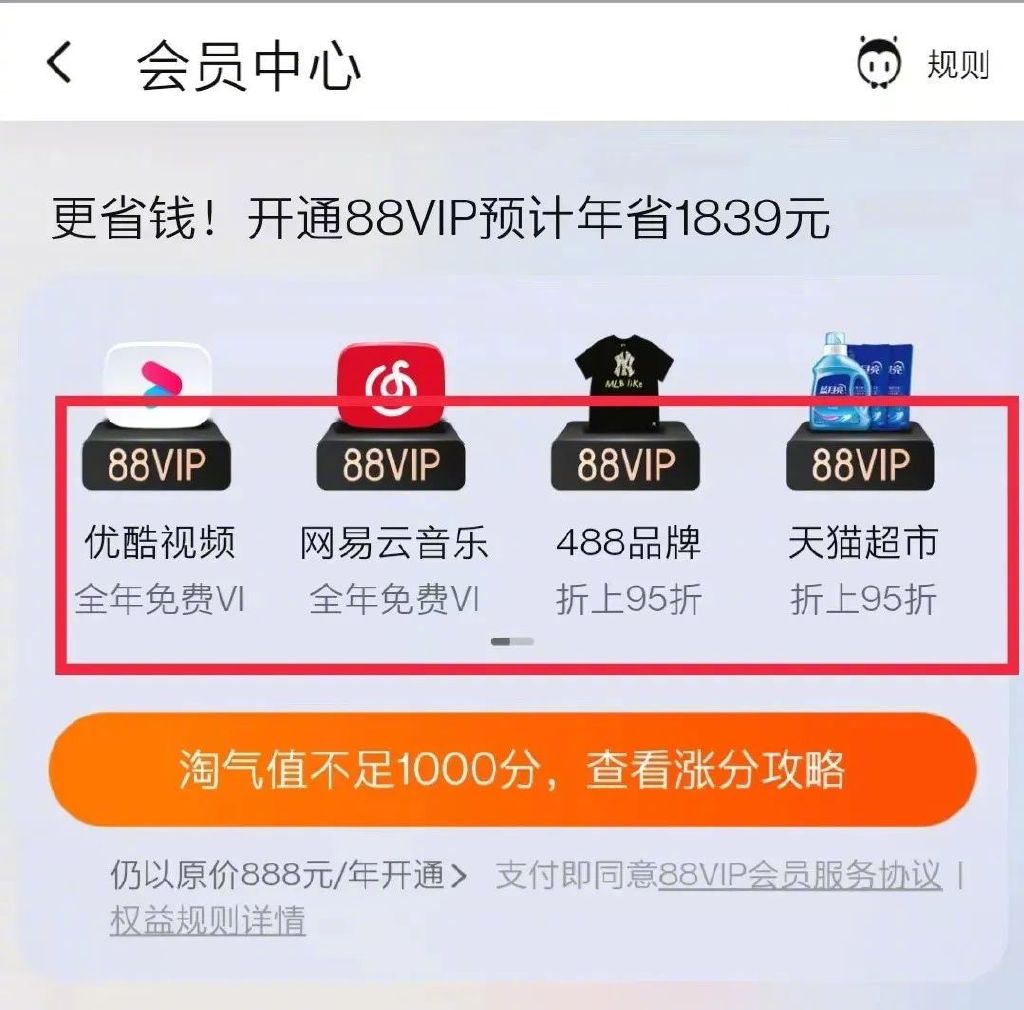 最新一个季度的财报数据显示,阿里旗下的88VIP会员共有2500万人,这部分会员用户过去12个月在阿里的人均消费是57000元,贡献了1.4万亿GMV。据此前阿里官方统计,88VIP会员的购买力是普通用户的两倍以上。