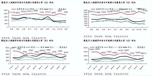 最近在华安证券的2022外卖行业专题报告中,提供了这样一组数据。在二线城市中,外卖创造了薪酬更具强竞争力的新工作岗位,相较于保安、保洁等可选择岗位,具有一定优势。