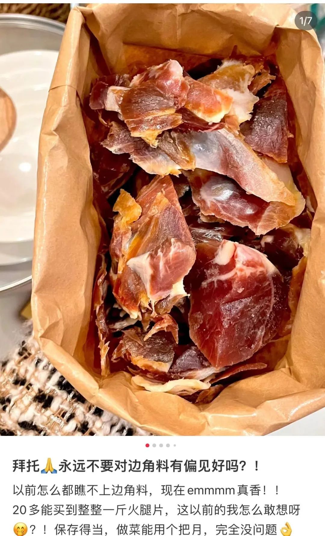 她当时并不知道发生了什么,随便找店下了一单,后来才发现不好吃。等翻过年,零食边角料零食概念爆火,她才知道火腿碎也被归类到了其中,跟着火了起来。