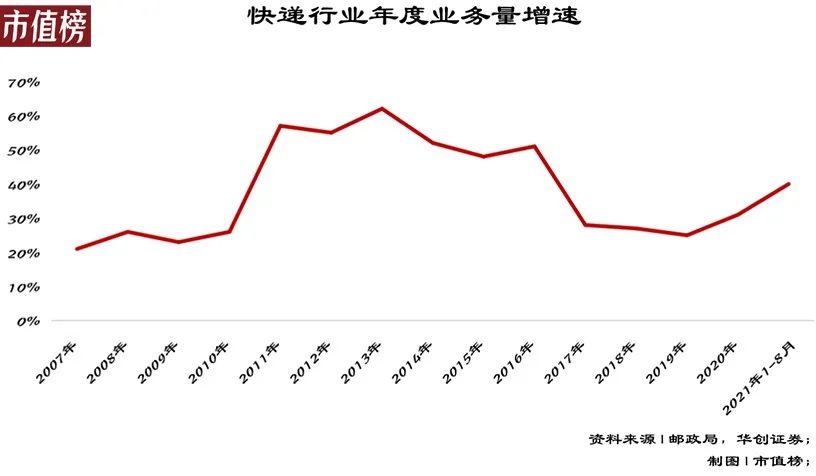 这种来自需求侧的冲击,将很快反映到快递企业这一供给侧。2009年民营快递企业正式获得合法地位后,快递业驶入高速车道。