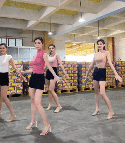 美女们站在朴素的仓库中,穿着紧身衣,露着大白腿,一下子就解锁了流量密码。