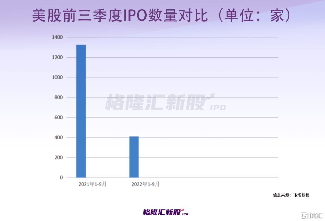 在美联储加息、美股市场低迷之际,打压估值造成许多企业搁置上市计划,美股IPO市场热度骤降。与2021年同期相比,美股今年前三季度IPO数量大幅减少,融资金额更是缩水超80%,最大的一宗IPO融资金额仅16.8亿美元。