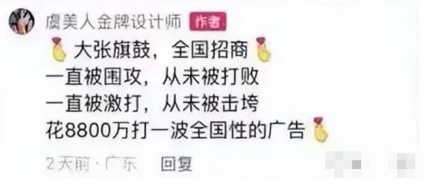 “一直被围攻,从未被打败。一直被激打,从未被击垮。花8800万打一波全国性的广告。”