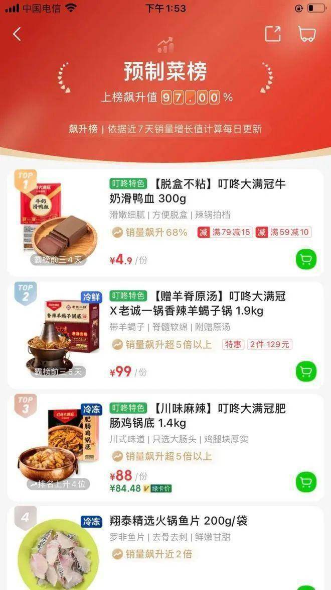 而据叮咚买菜数据显示, 国庆期间“预制菜热卖榜”50款上榜产品,总销量超过192万份,10月7日叮咚买菜“预制菜飙升榜”上榜飙升值达到97%,多个单品销量飙升5倍以上。
