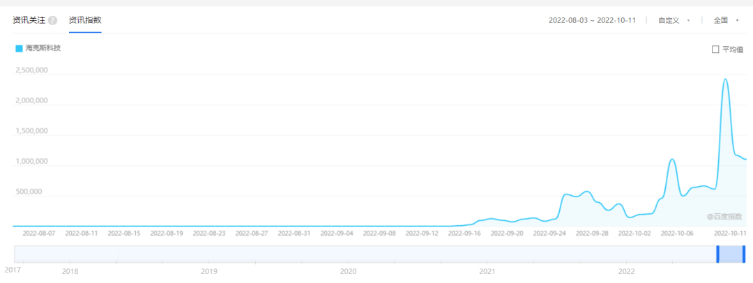 百度搜索指数显示,“海克斯科技”的热度同比上升了11000%。