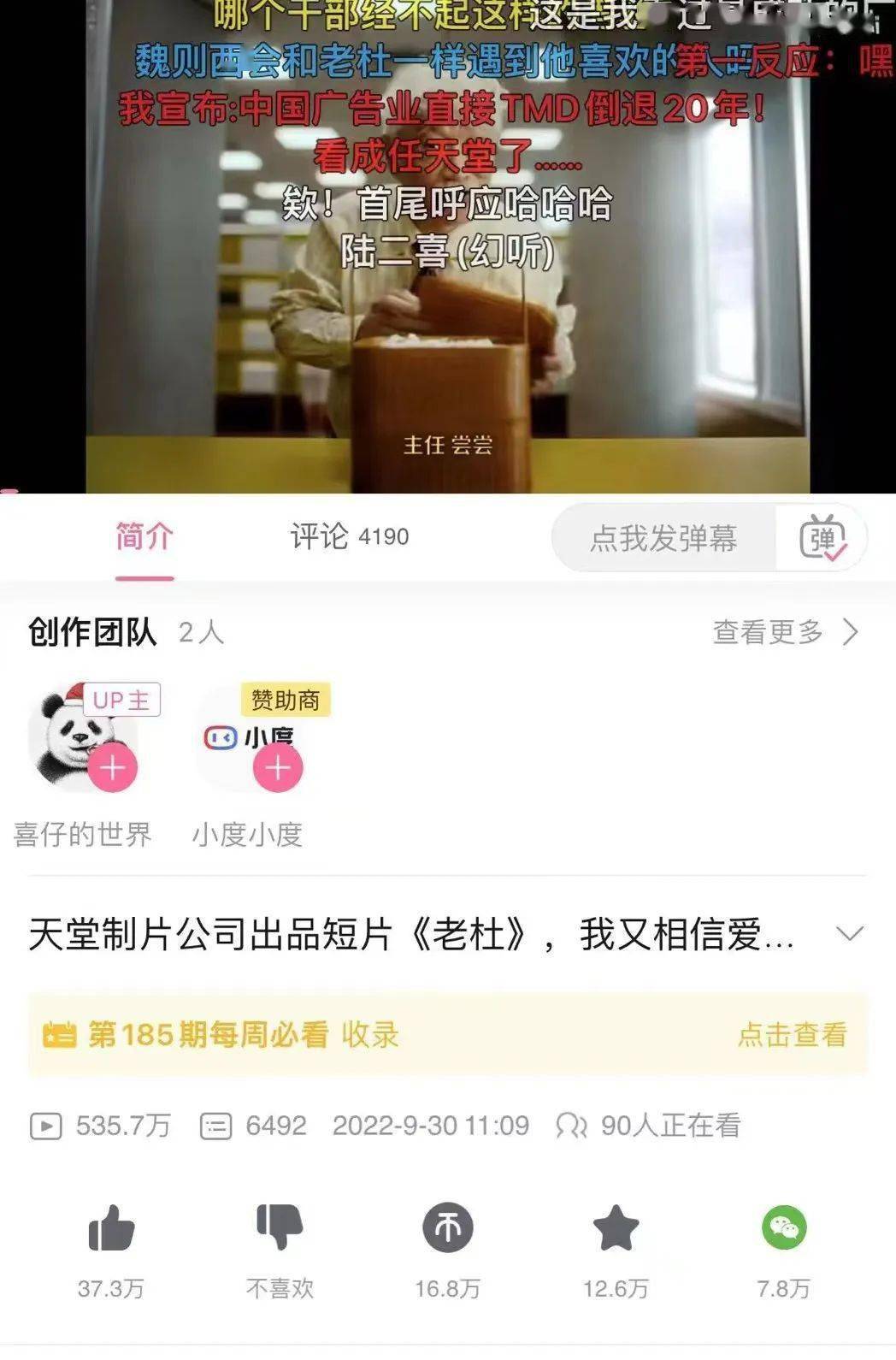 截至目前,《老杜》播放量破535w+,有37.3w人点赞,16.8w人投币,超7w人主动转发给了朋友。