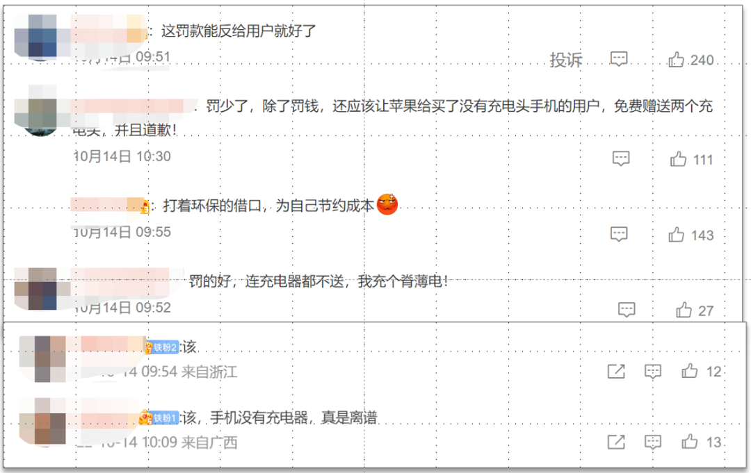 果子从数码大 V@科技新一 的微博下看到,不少网友都表示「罚得好」「罚少了」「打着环保的借口,为自己节约成本」,可见苹果这一政策是多么不受人待见。