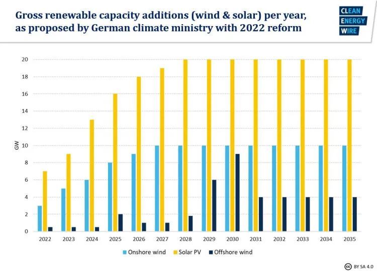 以德国为例,在俄乌冲突早期,其议会就动议要大幅提高对可再生能源的投资、并大幅提前0碳电网的目标——从2035年提前至2030年,这意味着全社会的脱碳进程要提速30%。