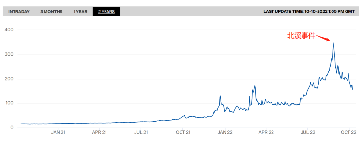 在北溪事件后,这条原本就不通气的管道让欧洲荷兰天然气期货价格一度应声跳涨近20%。在近期欧洲天然气进口规模攀升后,价格才逐步恢复理性,但依然在近年来的高位。