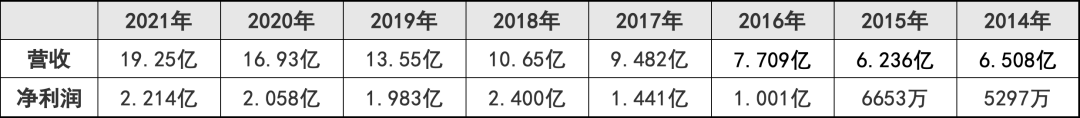2016年,千禾焦糖色素产销量全国第一,千禾酱油产销量位居西部地区第一,这一年它登陆A股,伺机进军全国。上市以来千禾营收规模稳步增长,2016年到2021年营收从7.7亿元增至19.25亿元,年复合增速为20%。