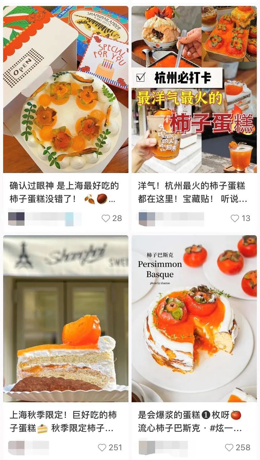 甜点界也注意到这颗“遗珠”。奶油柿子提拉米苏、流心柿子蛋糕、柿子巴斯克、柿子雪梅娘纷纷出圈,成为备受欢迎的时令甜点。