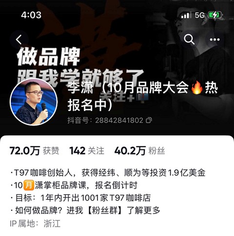 随着T97咖啡的走红和李潇大胆言论的出圈,有媒体发现李潇真正的目标似乎不是咖啡品牌,而是品牌管理课程。