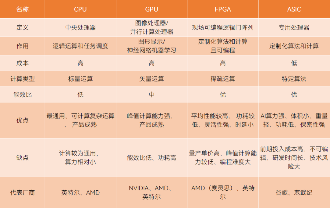 理性而言,GPU、FPGA、ASIC都是配合CPU计算的好能手,对厂商还是下游使用者而言,三者的特性截然不同,虽然可能会在部分应用场景下表现出更强的算力或更好的功耗,但部署过程难免要综合考虑TCO(总拥有成本)、构建难度、系统兼容度等,很难评判孰强孰弱。