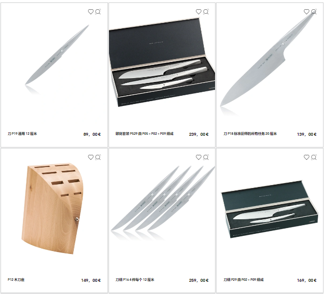 此次卖菜刀也不是首创,在其官网有着一系列相关的产品,有一套售卖的组合刀,也有配合使用的刀座,产品类型丰富,价格也跟这次卖的菜刀差距不大,基本上都在千元以上。