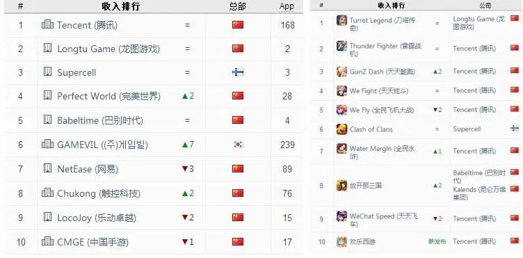 虽然当晚《天天炫斗》就重回第一,但这张图已经证明腾讯并非不可战胜。根据App Annie数据显示,《刀塔传奇》在7月力压一众腾讯游戏,登顶中国iOS应用收入榜,也让龙图游戏超过Supercell,成为中国区月收入第2位的发行商。