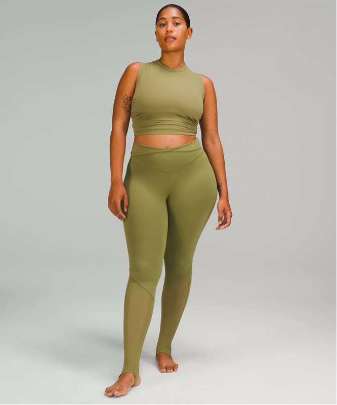 让我们再看看lululemon大码模特的尺寸,同样随机找一个展示瑜伽裤的大码美国模特,身高175cm的模特穿着12码,也就是腰围87.6cm的瑜伽裤。所谓的大码也还低于美国女性的平均腰围水平,但身高却远远超过平均身高。
