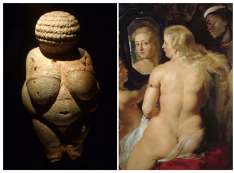 维伦多夫的维纳斯,是人类历史上最古老的雕塑之一。这座大约2.2-2.4万年岁的雕塑显示了一个苹果体型的女人,具有现在看来夸张的胸部、腰部和臀部。而在史前时代,这样的体型却被视为健康的生育身体的蓝本。