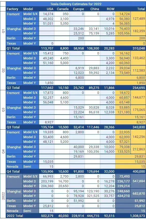 颇为尴尬的是,据特斯拉数据分析师Troy的预测,四季度特斯拉将生产45.4万辆新车,并交付其中的40万辆。之所以两项数据存在一定差距,还是由于从中国到欧洲的航运周期较长。