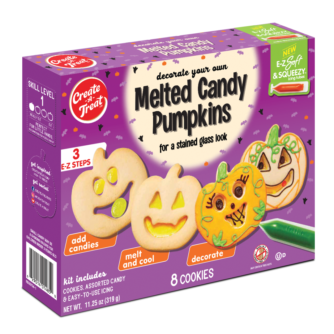 除了常规的南瓜灯笼形状的产品之外,加拿大公司Create A Treat还推出了更有可玩性的万圣节DIY饼干套装,里面含有8块预烤南瓜形曲奇,装饰用糖霜和糖果。