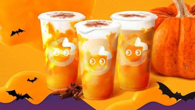 除了咖啡,南瓜当然也能运用在大家喜爱的奶茶当中。如开到了日本的coco每年的10月份都会推出万圣节限定的南瓜奶茶,去年更是升级推出了南瓜奶茶、南瓜拿铁和南瓜焙茶奶茶三款产品。浓厚的南瓜泥和牛奶混合,浓郁的香气中带着南瓜的甜味。咸奶盖和肉桂粉的点缀则进一步提升了的南瓜风味。