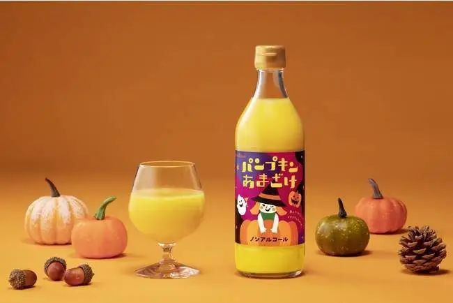 在现制饮品之外,依然可以看到南瓜在饮料品类中的运用。如龟甲万推出过添加了南瓜粉的南瓜豆乳饮料。中埜酒造在万圣节期间发售过无酒精南瓜甜米酒,使用米和米曲发酵的甜米酒结合北海道的南瓜,带来天然的甜味,小孩子也可以饮用……这些添加了南瓜的饮品的共通点就是会强调南瓜本身的风味和天然的甜味。