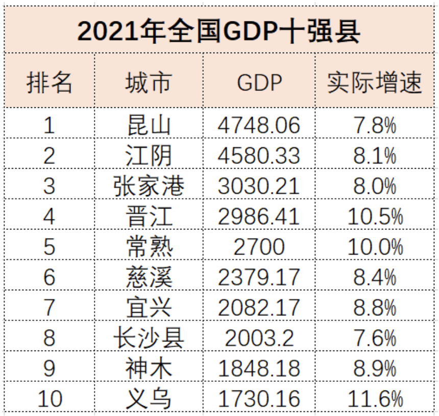 除了人口优势,这4个县城的经济实力也都很强势,位列2021年全国GDP十强县城。