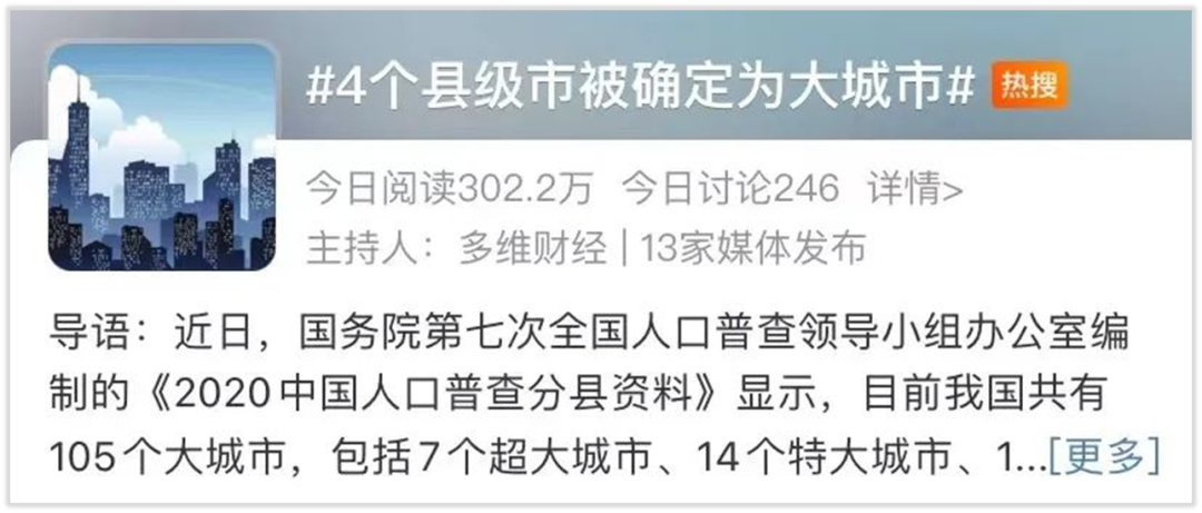 在全国105个大城市中,一般都是省会城市和地级市,县城跨入大城市还是第一次,可以说已经超越了大部分地级市。