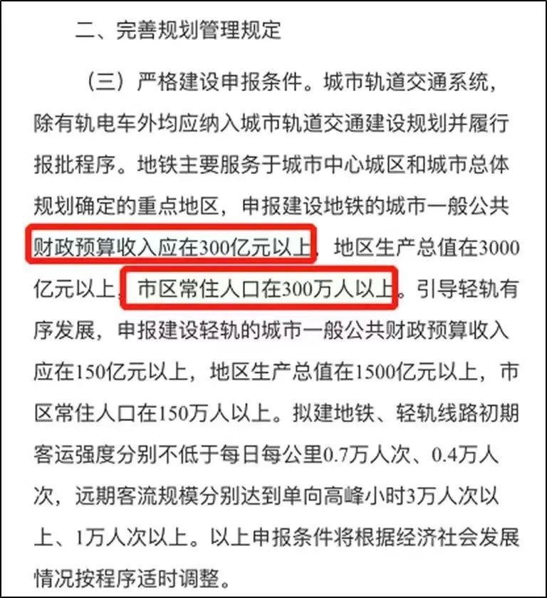 申报地铁的城市,一方面城市人口规模要足够大,另外城市的财政收入也要达到一定条件。