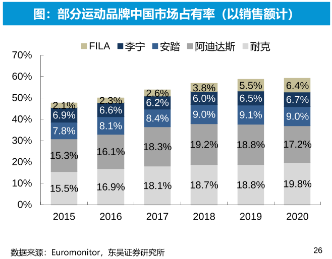注意,数据是以销售额计的,阿迪达斯与耐克价格相对较高,拉高了数据。所以消费者在选择品牌时的购买趋势,可能比图中更分散。