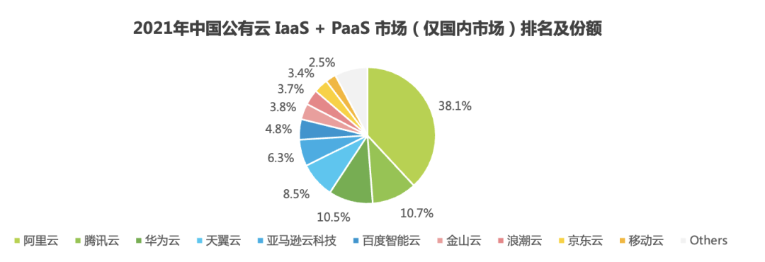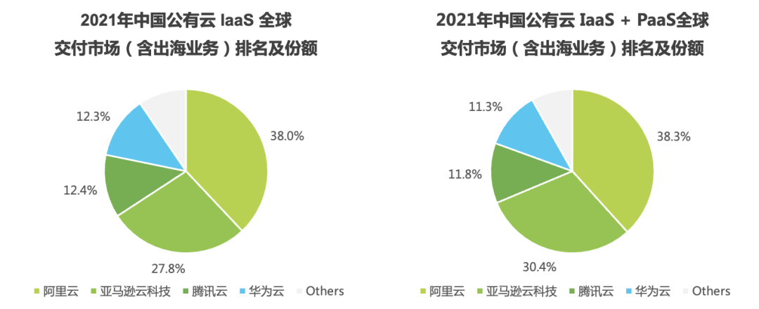 根据艾瑞咨询数据显示,2021年中国公有云市场,算上中国出海业务后,亚马逊云的份额占27.8%,位于第二。但如果不含出海业务,亚马逊云只有6.3%的份额。