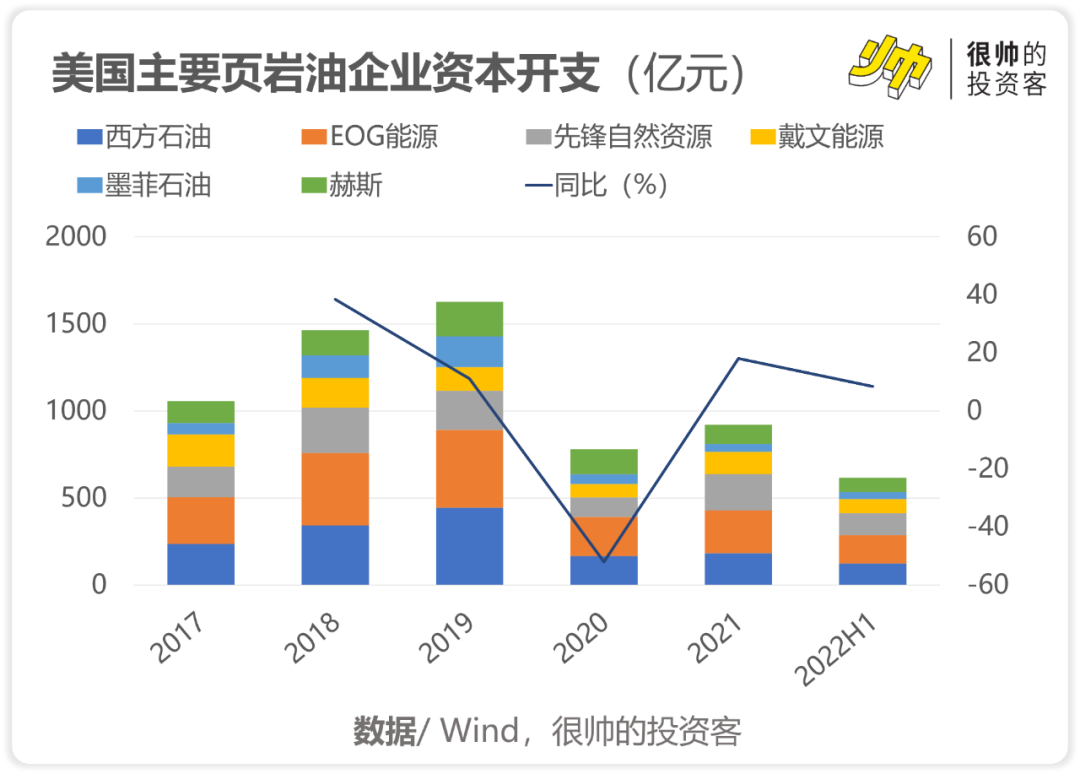 奈何美国页岩油近几年资本开支太低(也就是没怎么投资扩产能)。