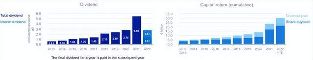 除了股息分配之外,ASML还在2022年第三季度进行了总额为10亿欧元的股票回购。