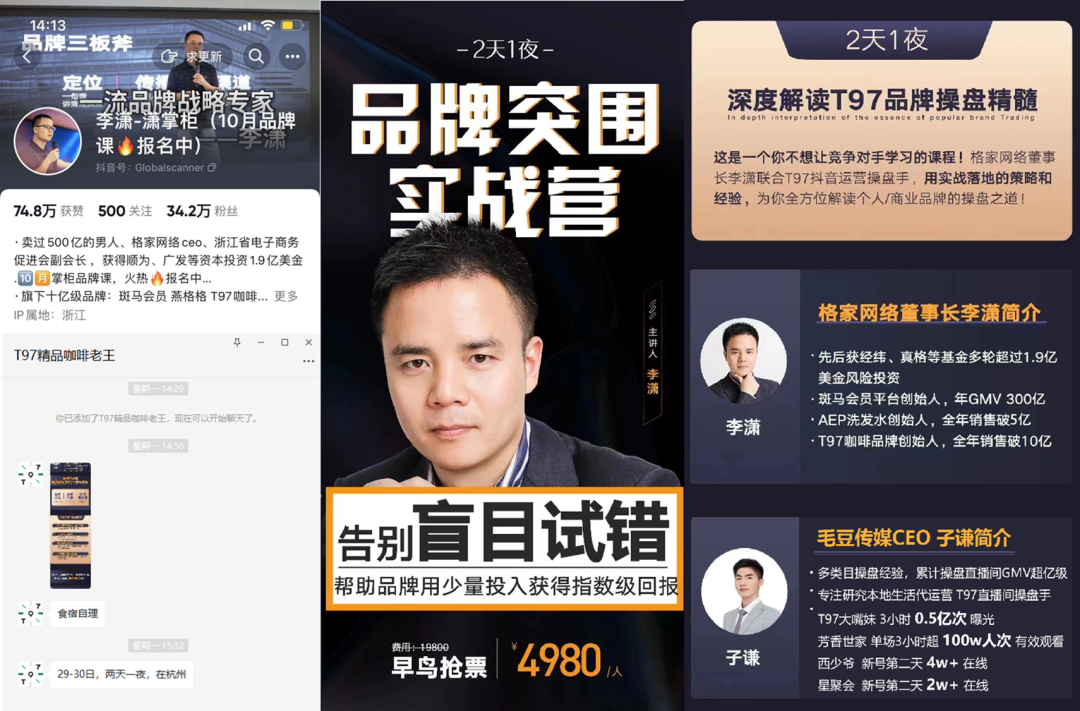 除了与品牌合作,T97创始人李潇还上线了培训课程。