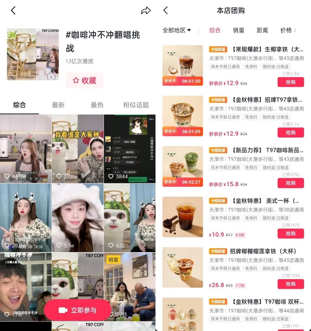 日前,#咖啡冲不冲翻唱挑战#和相关话题,登上了直播平台挑战榜和热榜的第一,直播间代金券团购,也做到了全国团购榜单的头部。