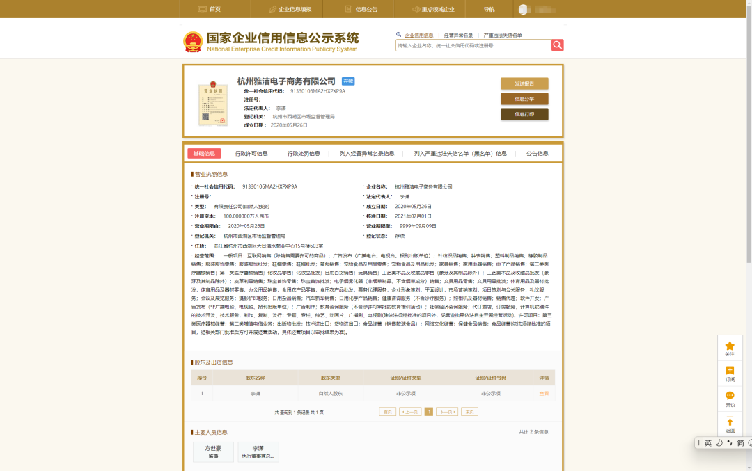 希柔隶属于杭州雅洁电子商务有限公司,成立初期与格家网络没有任何关联。日前,法定代表人和大股东变更为变更为李潇。