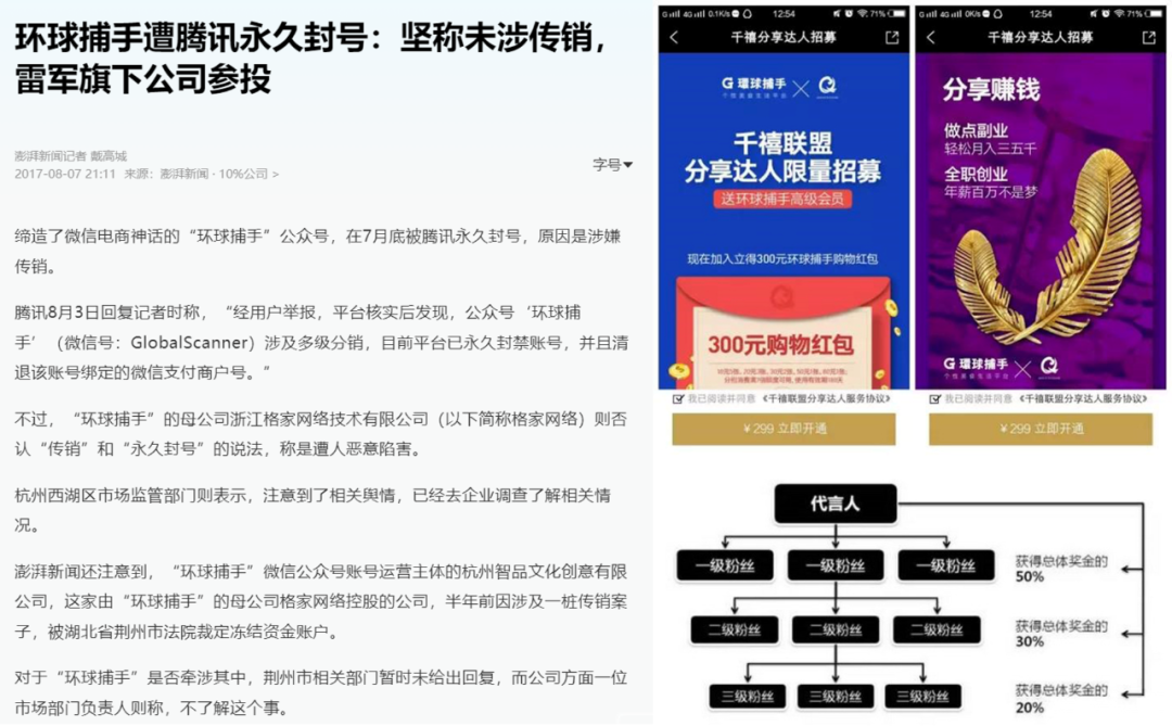 2017年7月底,环球捕手微信公众号被腾讯永久封号,原因是涉嫌传销。