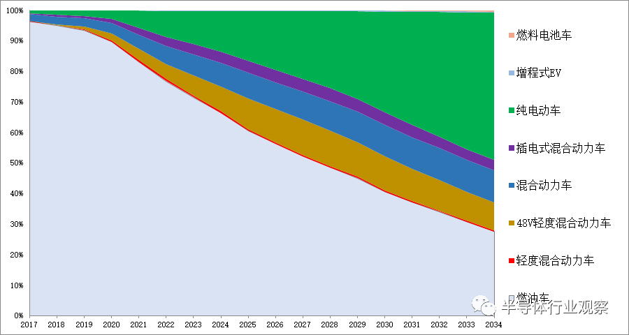 从上述厂商扩产消息来看,刺激他们此次逆势扩产的最大动力依旧是日益增长的电动汽车应用需求。虽然低迷的经济在一定程度上也影响到了汽车产业,但长远来看,纯电动车终将成为主导,LMC Automotive预测到了2034年,纯电动车销量占比能达近一半。