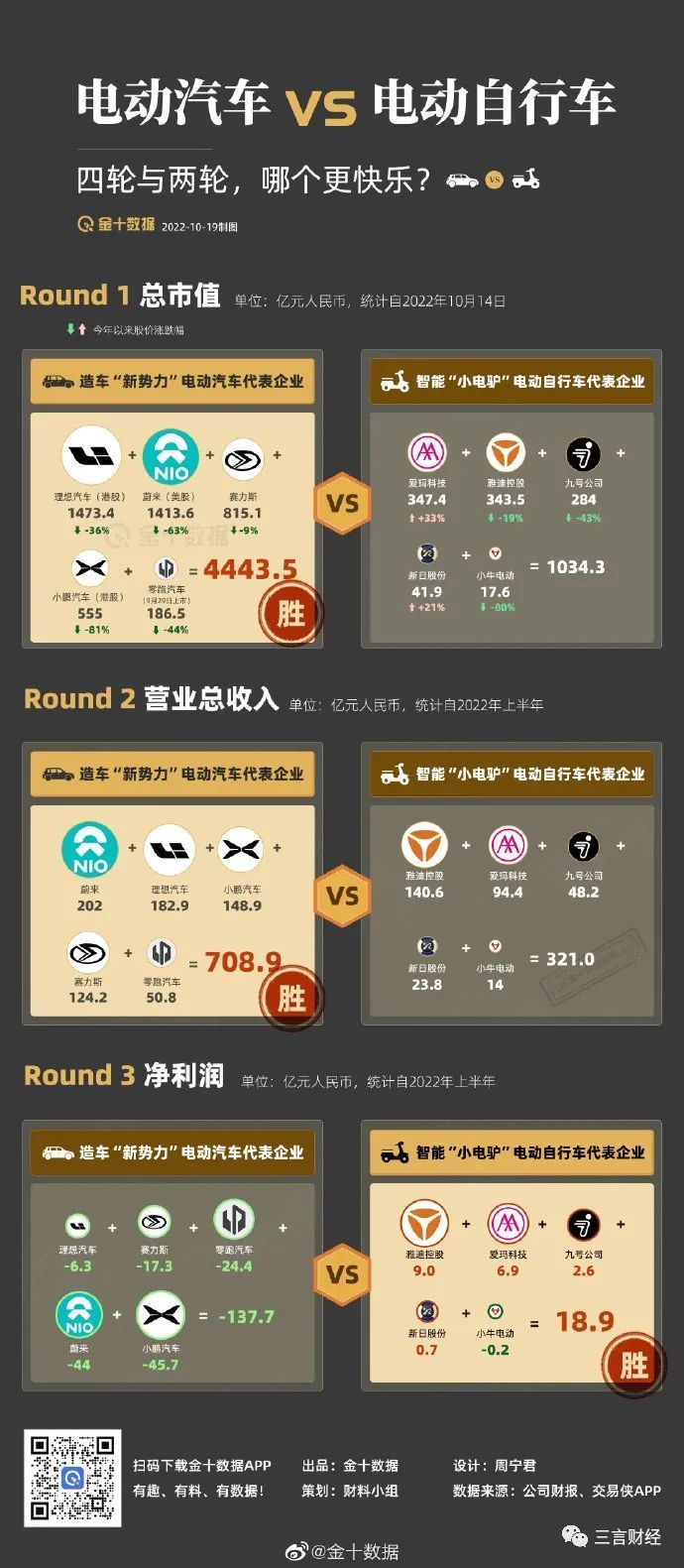 有些事一对比起来看,就很有意思。近日,投资资讯平台金十数据发布了一条信息,将电动汽车和电动自行车进行了一次全面的对比。