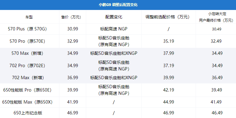 或许也是受到来自用户的压力太大,小鹏G9发布仅两天后,官方便宣布调整G9车型版本命名及配置,并将选择率高的功能直接进行了标配。