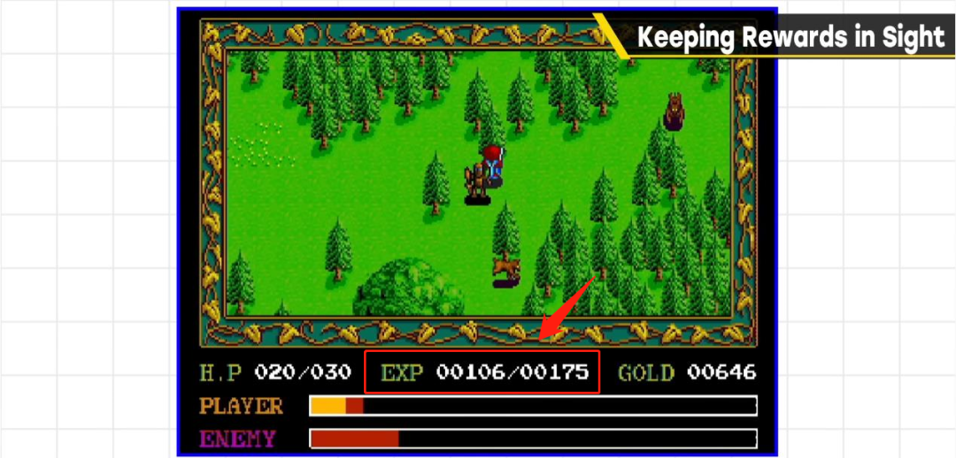 有了这个东西,我们便会产生“ 再打两只怪,就能升级 ”的想法,而再升两级,或许就能再掌握更厉害的技能,一直循环下去。