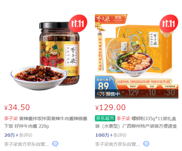 从李子柒来看,其大部分产品定价在100元以内,除了特殊礼盒款超过100元,其他产品价格均在50元左右,对于用户来说,在同类产品中是较为容易接受的价格。